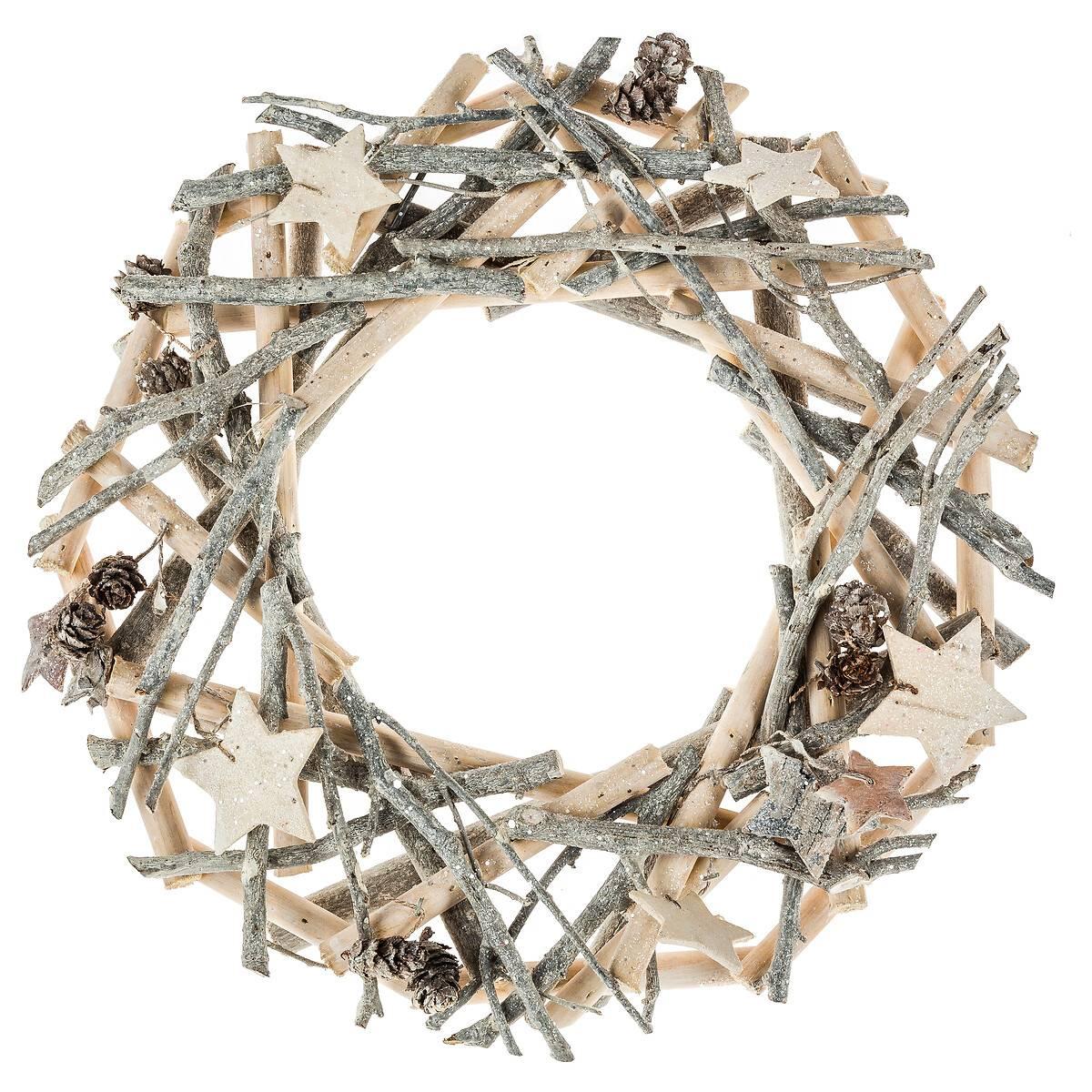 Couronne avec branches et étoiles 30cm bois