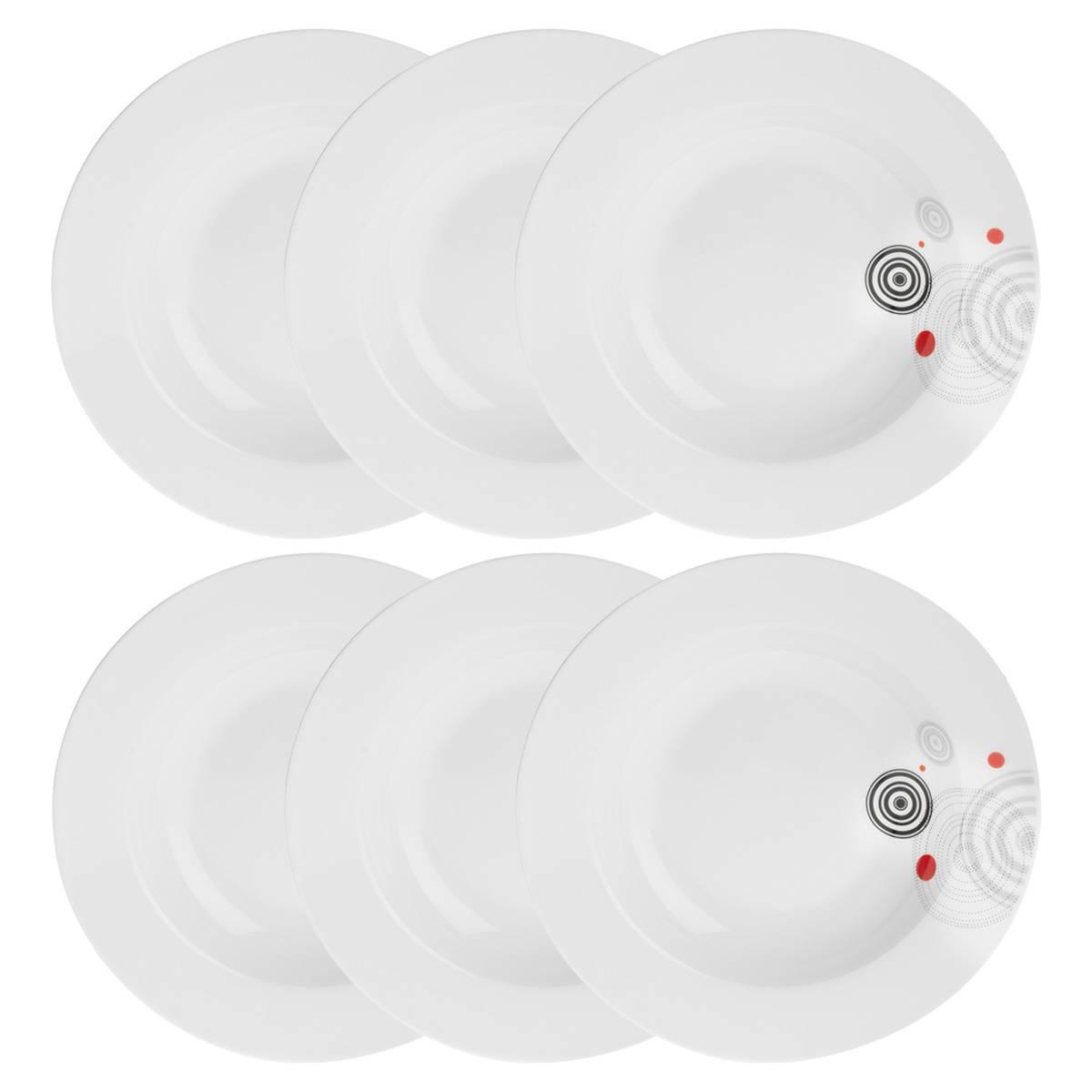 Lot de 6 assiettes creuses décorées D22cm en porcelaine